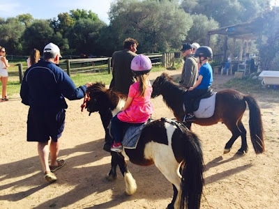 Guideless, and therefore unclear whether our trail was a loop or not, we turned around and headed back once the ornery pony W was on became more than we were interested in dealing with. Turns out the route was a loop and had we stuck it out a bit further we would have reached the sea. Oh well, it was still a great chance for 3 generations to enjoy Corsica on horse (pony) back. A lovely way to spend Derby Day. Giddy up.